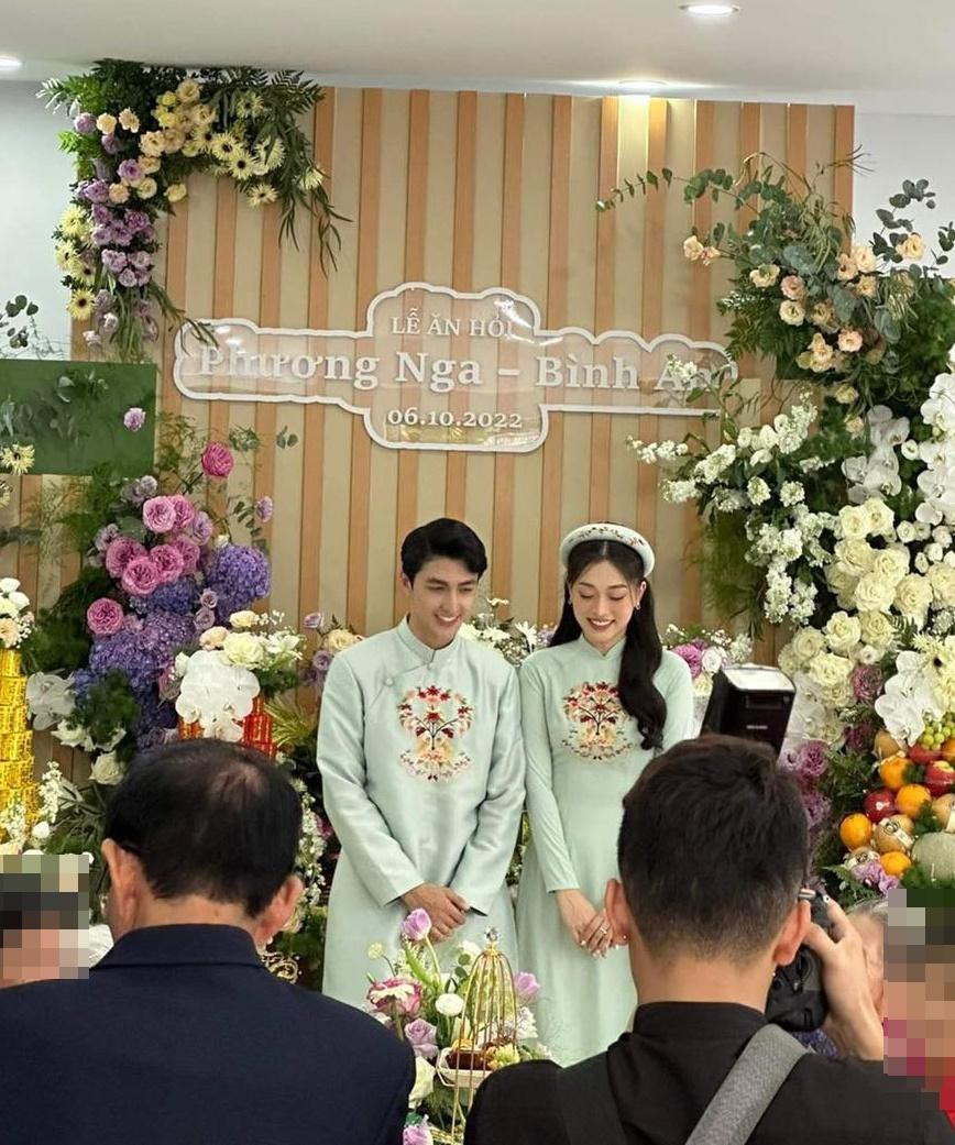 Sáng nay 6/10, diễn viên Bình An và Á hậu Phương Nga đã làm đám hỏi, đánh dấu cột mốc mới sau nhiều năm hẹn hò ngọt ngào. Cô dâu chú rể mặc áo dài màu xanh bạc hà đồng điệu và tất nhiên hai nhân vật chính đều cười tươi hết cỡ trong ngày trọng đại.