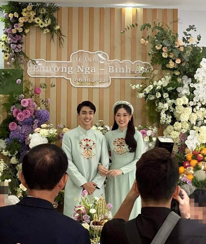 Á hậu Phương Nga đã mời rất nhiều nàng hậu đình đám tới bê tráp giúp mình như Hoa hậu Đỗ Mỹ Linh, Đỗ Thị Hà, Ngọc Hân, Á hậu Kiều Loan, Phương Anh, diễn viên Lương Thanh. Tuy các mỹ nhân chỉ mặc áo dài trắng đơn giản nhưng vóc dáng cao ráo, diện mạo xinh đẹp vẫn tạo thành đội hình đẹp như mơ.