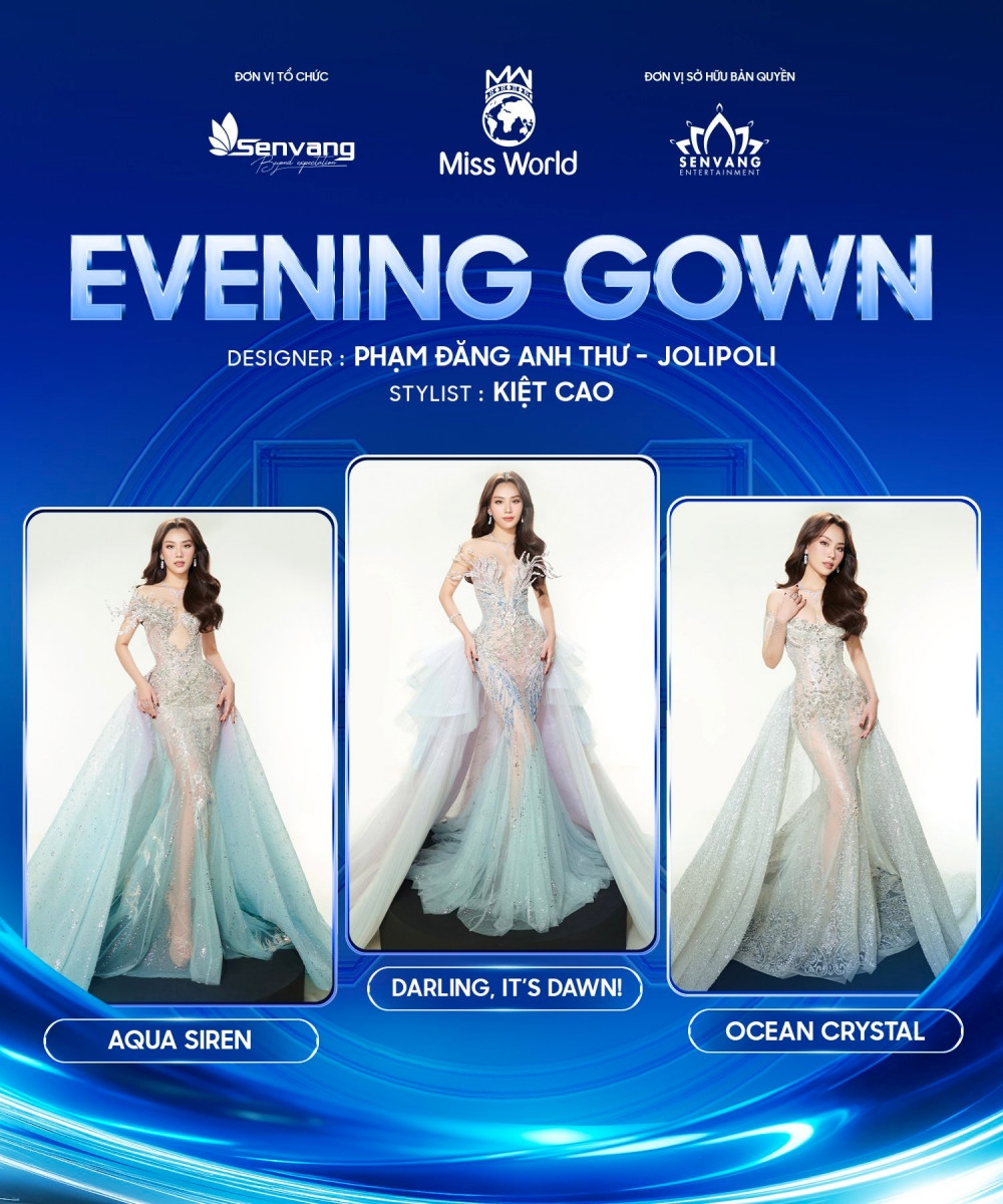 Với các thiết kế cho đêm Chung kết, ba mẫu váy dạ hội cũng khiến khán giả trầm trồ. Các mẫu váy đều được thiết kế phom váy đuôi cá sang trọng, đính kết rất tỉ mỉ, cầu kỳ với nhiều loại kim sa cao cấp. Với những gì nàng hậu đã và đang thể hiện tại Miss World lần thứ 71, người hâm mộ tin rằng cho dù chọn mẫu váy nào, Hoa hậu Mai Phương cũng sẽ toả sáng trong đêm Chung kết. Đêm Chung kết Miss World lần thứ 71 sẽ được tổ chức vào lúc 21 giờ ngày 9/3 (giờ Việt Nam), và sẽ được truyền hình trực tiếp trên kênh VTV9.